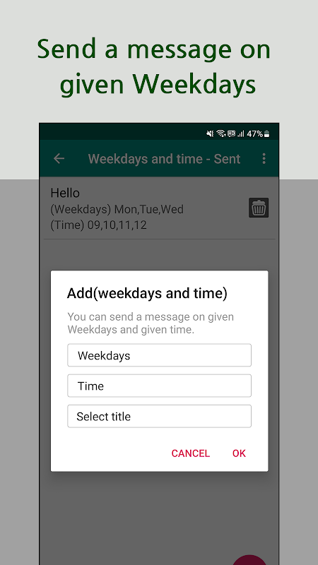 ★ Pengiriman Pesan Terjadwal – Mengirim pesan pada tanggal atau hari kerja tertentu.