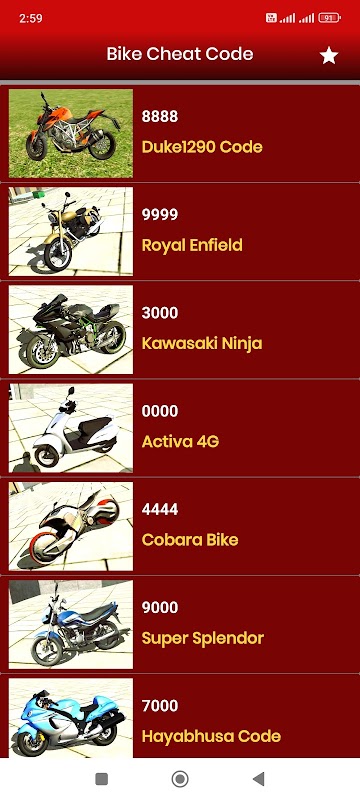 Dapatkan daftar kode cheat untuk permainan Indian Bike Driving.