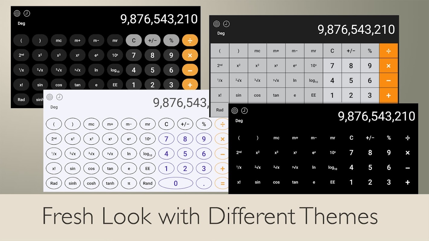 Aplikasi ini menyediakan semua fungsi ilmiah seperti: akar, pangkat, faktorial, eksponensial, pembagian, dan logaritma. Termasuk fungsi trigonometri seperti sin, cos, arcsin, arches, tangen, dan lainnya.