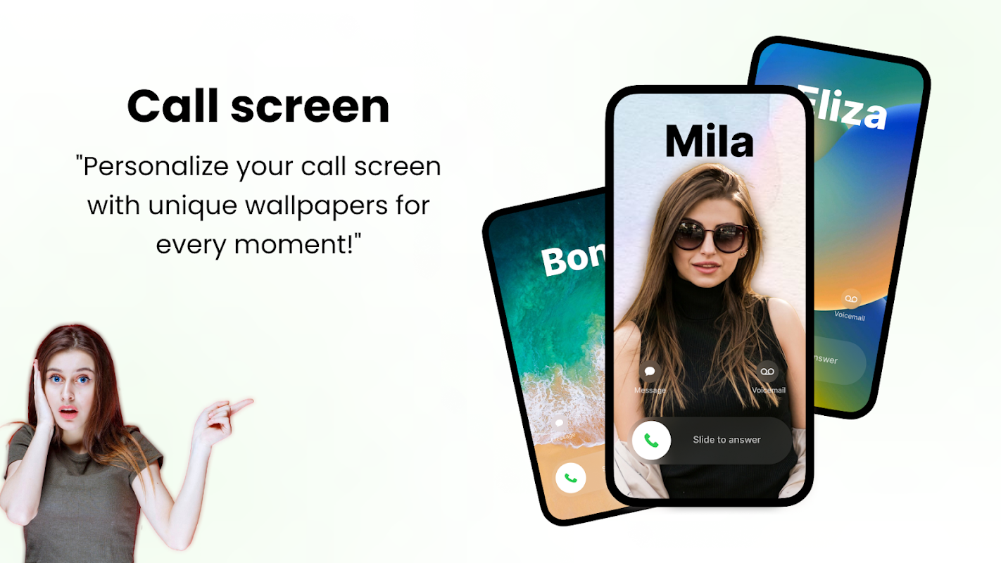 Hadirkan antarmuka yang intuitif dan canggih ke ponsel Android Anda. Cukup geser dengan ibu jari "geser untuk menjawab tombol" untuk mengangkat panggilan telepon.