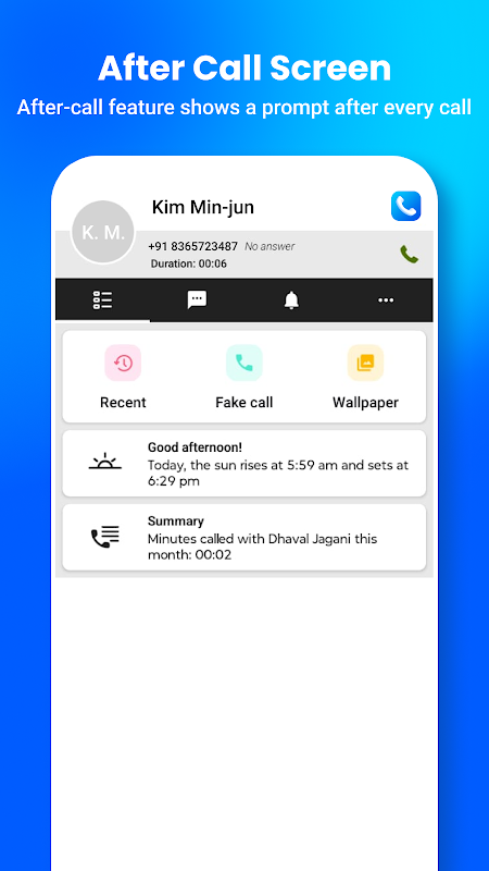 Setelah setiap panggilan, lihat layar praktis yang memungkinkan Anda menelepon balik, mengirim pesan, memblokir, atau menambahkan catatan. Tinjau panggilan terbaru dengan cepat atau ambil tindakan tanpa perlu menavigasi ke tempat lain.