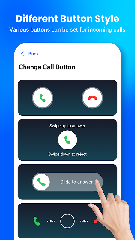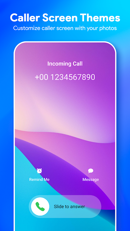 Personalisasi layar panggilan masuk dan keluar dengan tema, gambar latar, dan foto kontak yang stylish. Gunakan fitur geser untuk menjawab dengan ID penelepon layar penuh untuk tampilan modern.
