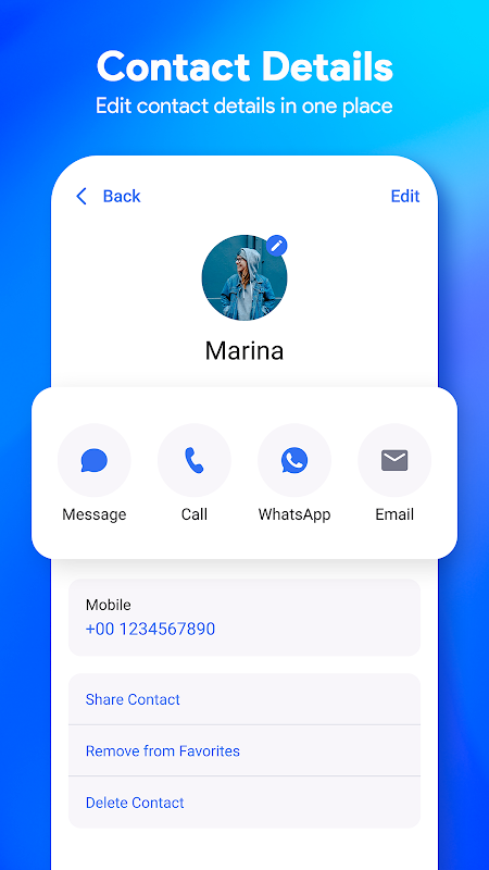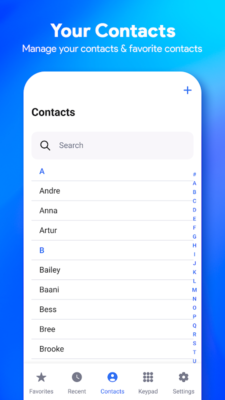 Tambahkan, edit, favoritkan, atau hapus kontak dengan mudah. Seluruh daftar kontak Anda tertata dan mudah dikelola.