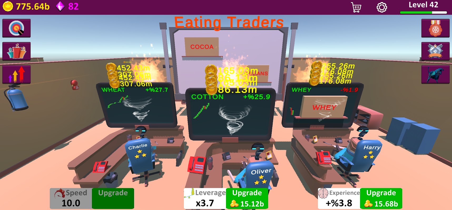 Speed increases trade speed. Leverage is the multiplier for the profits of traders and experience is the additional profit for all traders. See how every boost is used to become a trading tycoon and have fun!