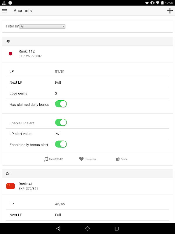 * Manage multiple SIF accounts (Rank, EXP, LP, Daily bonus, etc), even from different regions.