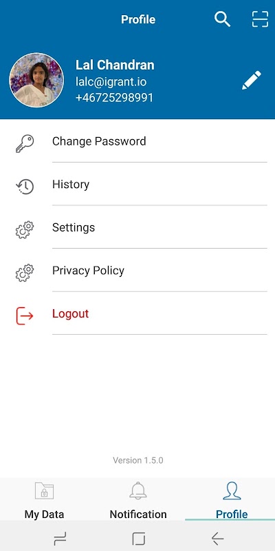 NOTE: This app is only for demonstration purposes, meant for iGrant.io pre-sales team. You may install this ONLY as instructed by iGrant.io sales representative.