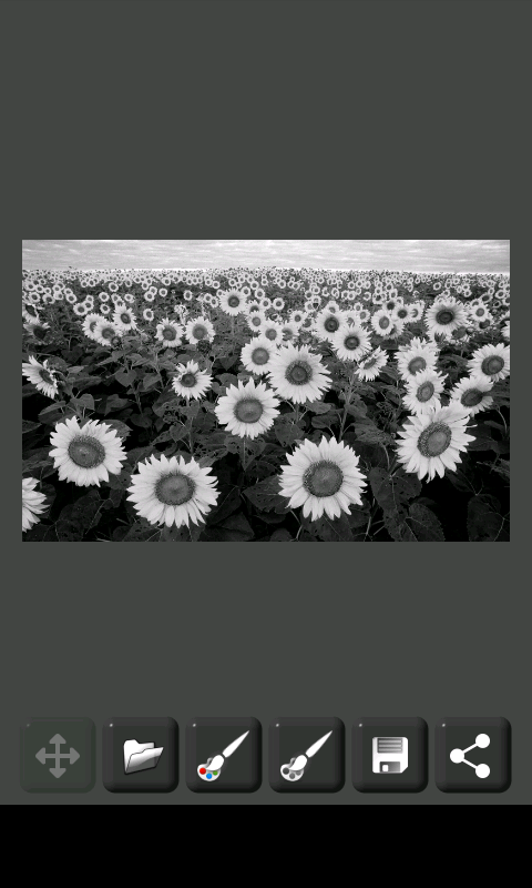 Gambar asli (yang harus dalam warna) pertama-tama diubah ke grayscale (hitam dan gambar putih), maka Anda dapat mewarnai daerah yang diinginkan dengan menggunakan jari Anda.