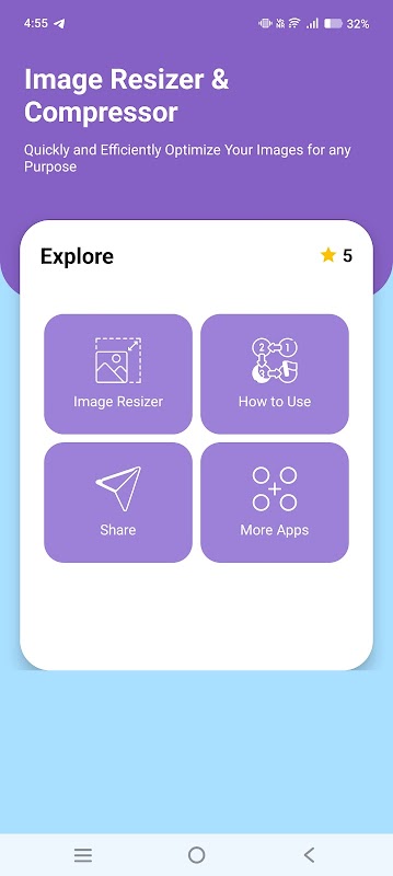 Aplikasi Image Resizer memudahkan Anda mengubah ukuran, mengompres, dan mengoptimalkan gambar tanpa mengurangi kualitas. Sempurna untuk media sosial, situs web, dan menghemat ruang penyimpanan.