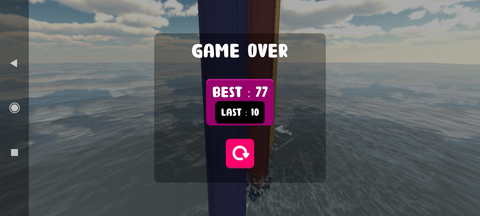 Hindari menabrak pilar yang berputar dan terbang melintasi laut