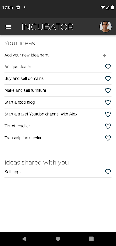 Incubator is an idea-sharing platform for collaboration and brainstorming. List down all the ideas for products, services, apps, things to do at home and all sorts of stuff you have during the day. Invite friends to the app and add them as your friend on the app. Share inventive ideas with your friends and collaborate together to bring your ideas to fruition.