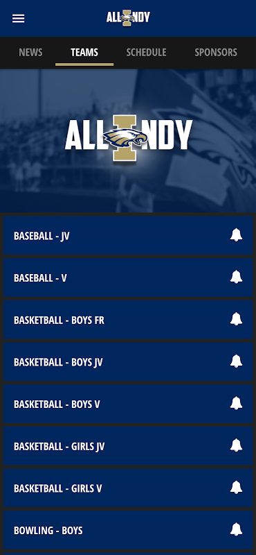 Aplikasi Indy Nation disediakan dan dioperasikan oleh Independence High School dan menampilkan skor LANGSUNG, jadwal, pembaruan berita, dan daftar nama untuk semua tim dan organisasi Indy Eagles yang berpartisipasi.