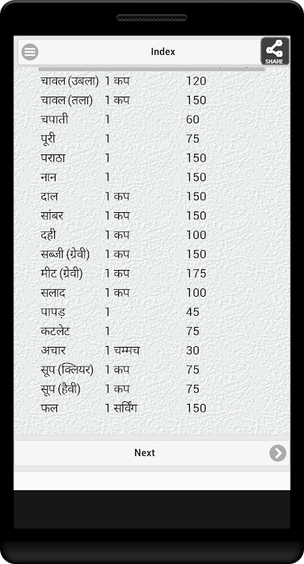 Indian Calorie Chart 19.0