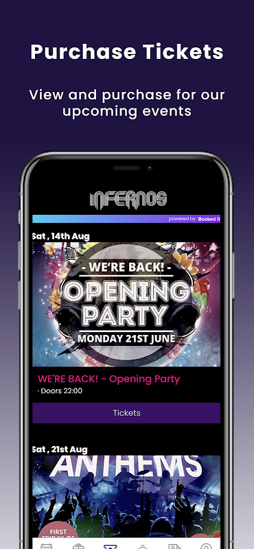 Gunakan aplikasi Infernos untuk melakukan pemesanan dan pemesanan, dapatkan hadiah, dan lihat foto.