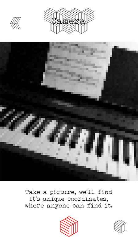 At this point, some of you may be suspicious of this since this works offline and you may be asking: has this app taken the little storage I had left in my phone? The answer is no. Actually, it would be impossible to store all of it in such a little machine. The way the gallery works, is by creating a coordinate system on which every single picture is assigned to a unique coordinate. So when you enter a particular set of coordinates the app generates the picture associated with it. That picture will always be located at those same coordinates and anyone, anywhere can find it. And it also goes the other way, with any picture you upload, the app will find the 64 by 64 grayscale version and show you the coordinates where you can find it again.