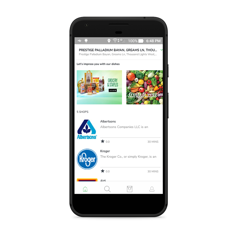 Menu: Upon opening the app, we show you the menu of shops serviceable around you.