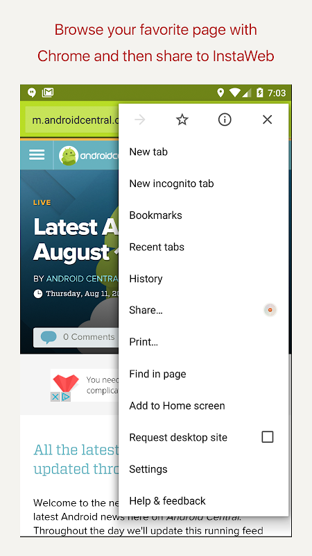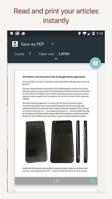 InstaWeb is a powerful tool for your Android device to remove article clutters from webpages and create a PDF very fast and easy. Just browser as you usually do with Chrome, and then share your article to InstaWeb and we will clean it for you. You can save the clean article for offline reading if you wish!