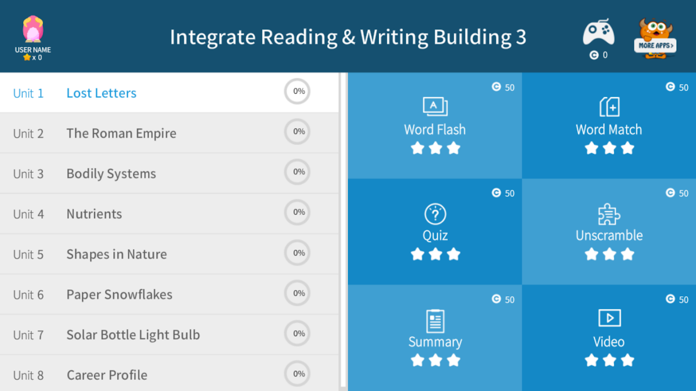 The wide variety of activities have been designed to motivate learners. They can earn points and grow their avatar, while developing their English skills at the same time.