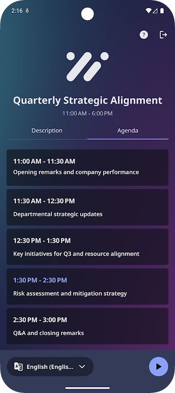 Periksa apakah acara ini menggunakan Interactio dan menghindari berdiri dalam antrean untuk mendapatkan headset tradisional untuk interpretasi simultan atau streaming audio lainnya. Cukup download aplikasi dan tekan bermain di sungai. Sekarang semua yang Anda butuhkan adalah smartphone Anda sendiri dan headphone favorit Anda.