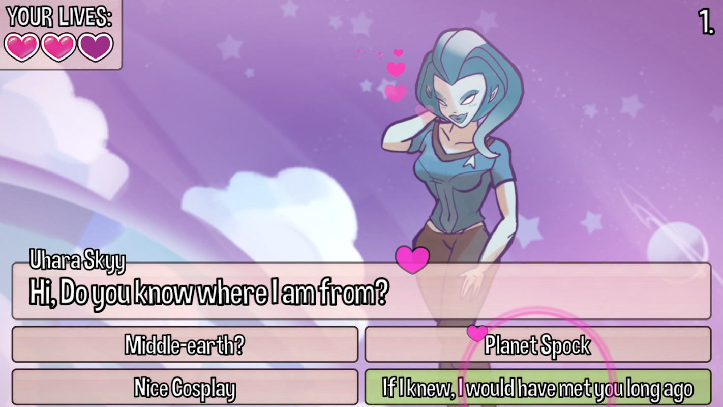 Intergalactic Love Machine is an impossible dating sim. You play as Chip, the spaceman who is ready to meet and seduce every creature in the galaxy. Grind your way through hard questions and earn your title as ultimate playboy.
