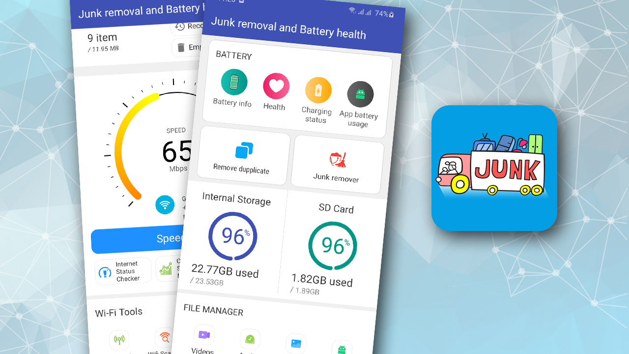 Pengelola file & penghapusan sampah, kesehatan baterai, pengukur kecepatan sel