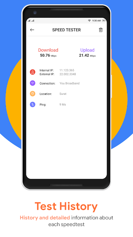 Internet Speed Testes - Speed Check, your best tool of internet speed test, tests speed in one tap. It tests speed of internet & WiFi. Internet Speed Testes - Speed Check helps to exactly acquire the speed of ping, downloading and uploading, and ensure the network security of WiFi hotpots.