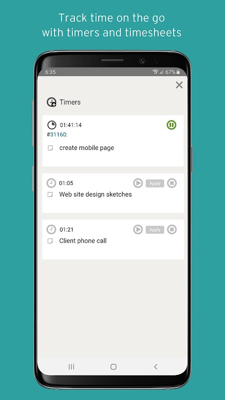 Gunakan pengatur waktu seluler untuk melacak waktu saat jauh dari meja Anda. Buat dan edit proyek, setel dan tinjau anggaran proyek, dan cari serta edit catatan proyek. Perbarui tugas dan ubah permintaan pekerjaan menjadi tugas.