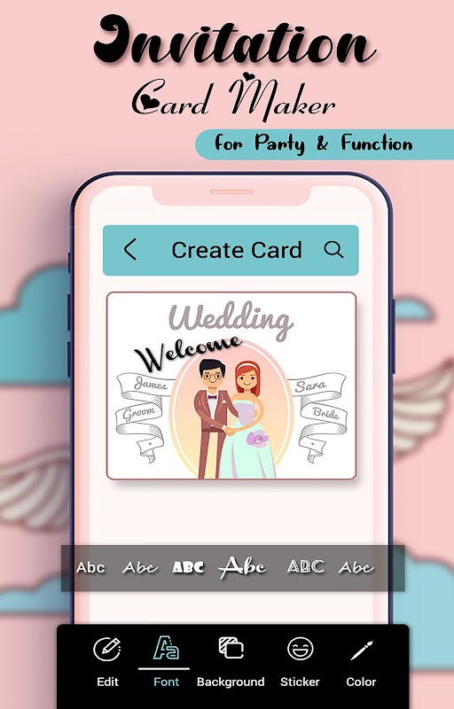 Buat kartu undangan yang indah untuk setiap kesempatan seperti Pernikahan, Pertunangan, Baby Shower, Pesta Ulang Tahun, Pesta Penghangat Rumah, Pesta Wisuda, dll. Dan undang teman dan keluarga Anda dengan mengirimkan kartu undangan RSVP melalui Email atau platform jejaring sosial lainnya langsung dari aplikasi .