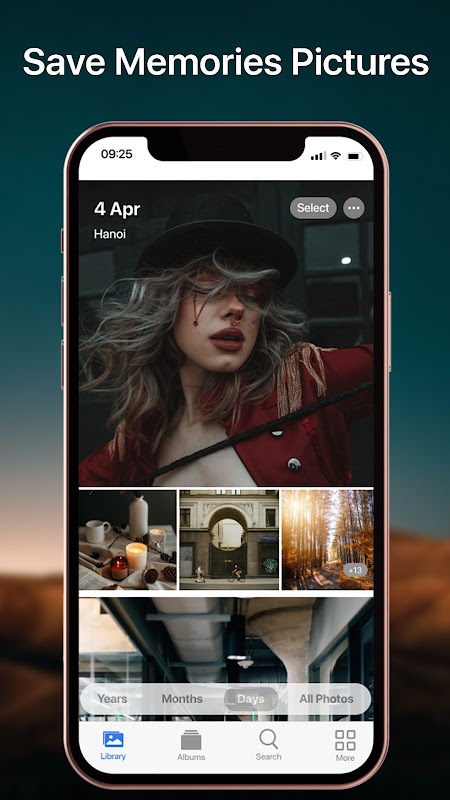 - Enjoy a curated view of your moments in the Library tab, then browse by years, months, days, or all photos.