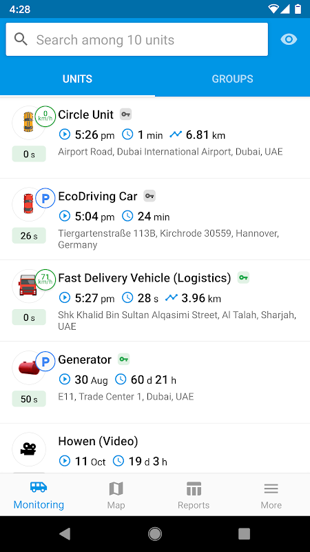 - bekerja dalam mode pemantauan: melacak lokasi dan parameter masing-masing dan setiap unit tidak pernah semudah ini;