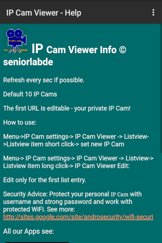 Dunia ini luar biasa. Bepergian keliling dunia! Anda dapat mengunjungi tempat impian Anda secara gratis dan langsung. Aplikasi ini tidak mengumpulkan data apa pun. Baca bantuan dan gunakan fungsi pengeditan untuk menyiapkan webcam pertama.