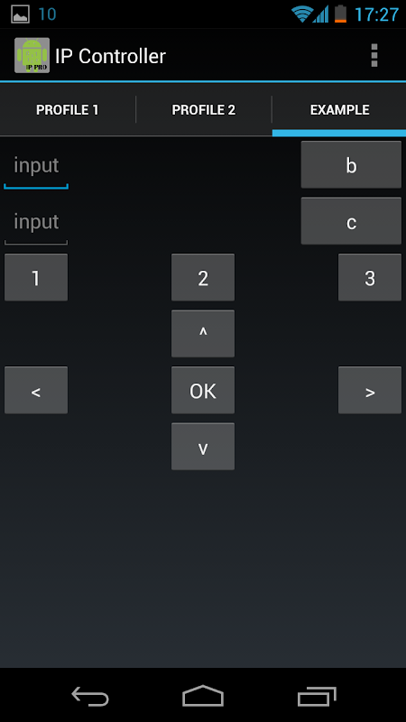 In this application profile 3 is loaded with an example layout. All you have to do is fill in the IP and port for your device in the settings screen and change the strings to your needs.