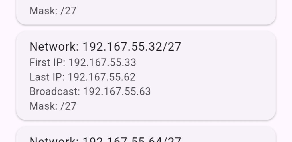 Aplikasi IP Subnet adalah kalkulator subnet yang kuat dan mudah digunakan yang dirancang untuk administrator jaringan, profesional TI, dan pelajar. Dengan aplikasi ini, Anda dapat dengan cepat menghitung subnet mask, rentang IP, alamat siaran, dan notasi CIDR.