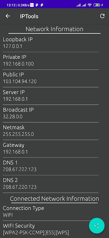 Alat IP memiliki antarmuka yang sederhana dan intuitif, sehingga Anda dapat menerima informasi lengkap dalam beberapa detik di jaringan Anda, mengetahui IP internal atau eksternal, SSID, BSSID, alamat siaran, gateway, topeng jaringan, dan informasi dasar lainnya.