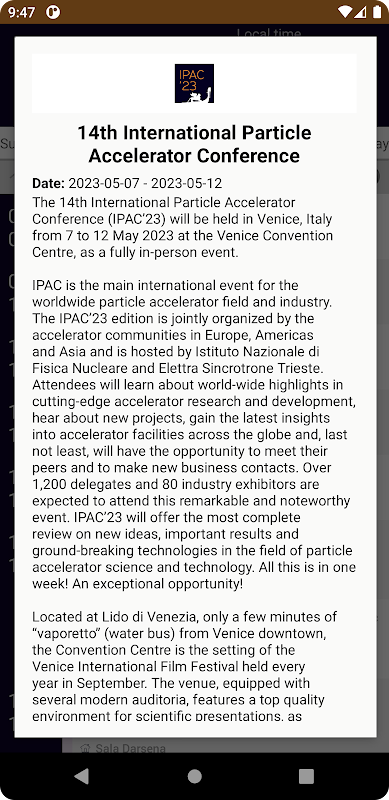 Aplikasi IPAC23 memberikan informasi terkini tentang konferensi tentang program ilmiah; sesi industri; penulis; logistik; peserta pameran & sponsor.