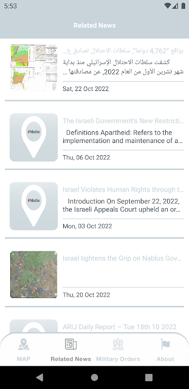 Aplikasi seluler ini termasuk dalam kegiatan yang ditentukan proyek dan dimaksudkan untuk menyediakan peta interaktif online. Ini dimaksudkan untuk bertindak sebagai jembatan untuk menyampaikan informasi penting terkait dengan aktivitas pemukiman Israel di wilayah Palestina yang diduduki, dan dengan demikian memberikan akses kepada publik dengan legenda peta dinamis, termasuk kemampuan untuk menanyakan setiap data atribut lapisan dalam peta dan kemampuan untuk menggeser, memperbesar, mendapatkan informasi, menyembunyikan dan menampilkan lapisan.