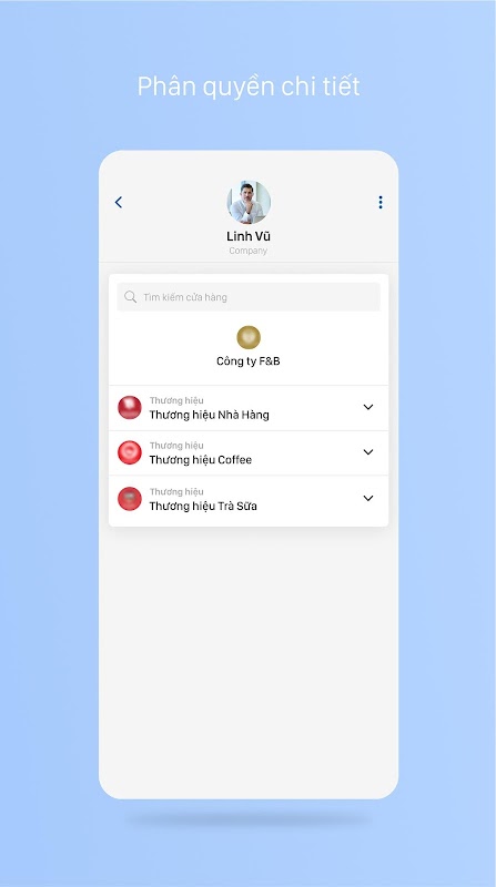 • Phân quyền chi tiết cho từng tài khoản theo mục đích và chức năng khác nhau.