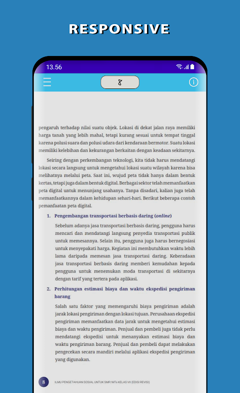Buku Siswa IPS Sekolah Menengah Pertama Kelas 7 Kurikulum Merdeka untuk merealisasikan program di tingkat satuan pendidikan. Aplikasi ini di buat untuk memudahkan siswa belajar dimana saja dan kapan saja.