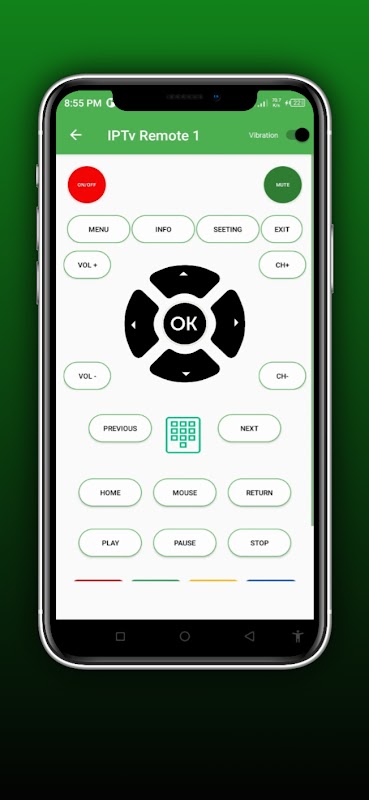 Ubah ponsel cerdas Anda menjadi remote control IPTV khusus dengan Remote Control IPTV Inframerah. Unduh sekarang dan sederhanakan pengalaman menonton TV Anda dengan kontrol penuh di ujung jari Anda.