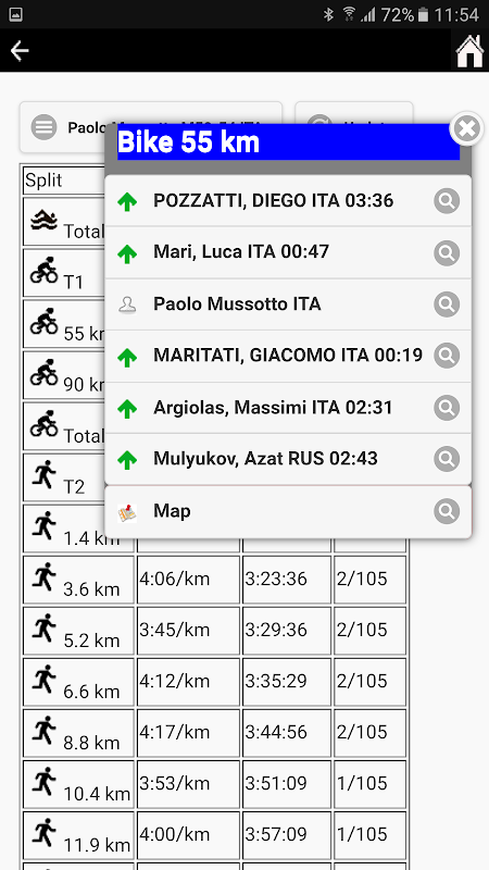 E' inoltre possibile verificare la classifica parziale per ogni singola disciplina (nuoto bici e corsa)