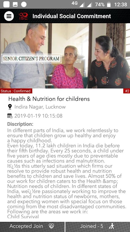 Aplikasi ISC memiliki informasi mengenai berbagai kegiatan yang sedang dilakukan oleh pan LSM India. Sebagai pelanggan ISC, seseorang dapat menjadi sukarelawan untuk menjadi bagian dari kegiatan tersebut dan membayar kembali kepada masyarakat bukan dalam bentuk uang tetapi dalam hal waktu dan upaya individu. Ini bisa menjadi pengalaman akhir pekan yang menyenangkan untuk semua kelompok umur.