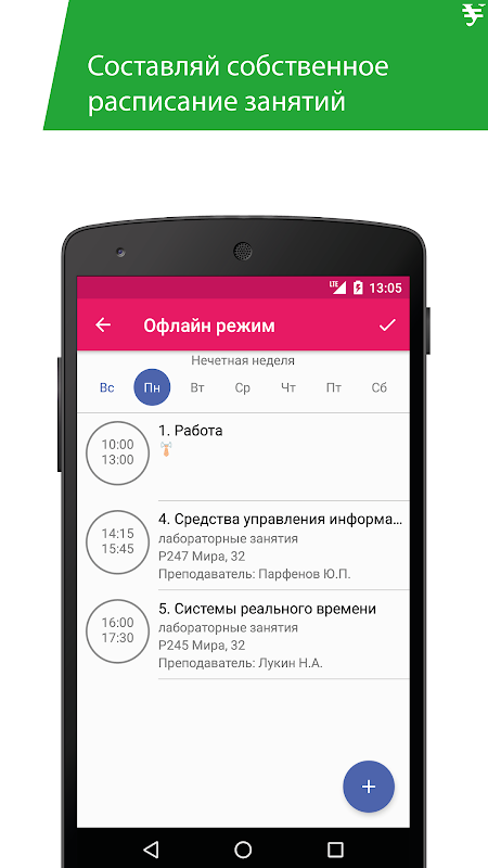 - Для Вашего удобства расписание можно создавать на четную и нечетную недели по отдельности