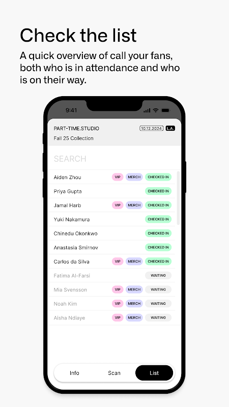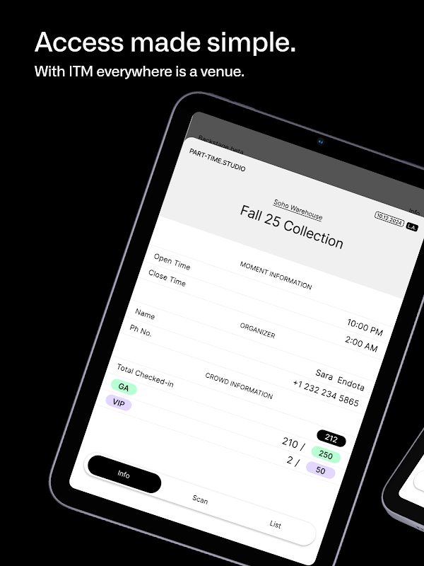 Akses Multi-Pengguna: Memungkinkan banyak pengguna untuk mengelola entri ke acara Anda secara bersamaan, meningkatkan kolaborasi dan menyederhanakan proses check-in.
