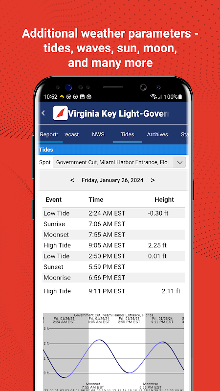 - Info cuaca lengkap, hembusan angin, radar hujan, satelit, NOAA, NWS, di tempat-tempat yang menarik bagi penduduk pesisir dan pemilik properti di dekat laut, sungai, dan perairan lainnya.