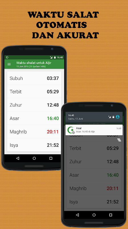 - Jika masuk waktu adzan alarm adzan akan berbunyi di handpone