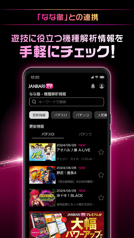 Aplikasi resmi dari situs video pachinko / pachislot terbesar di Jepang "JANBARI.TV" sekarang tersedia!
