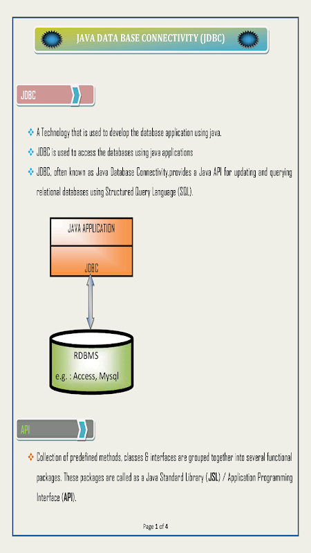 • Belajar JDBC dengan mudah, memungkinkan Anda untuk memiliki penguasaan yang baik untuk menciptakan aplikasi.