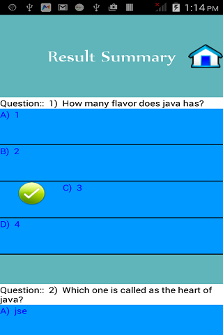Java Preparation App you can also find Explanations for given answers and summary page after finishing quiz questions for every chapter.