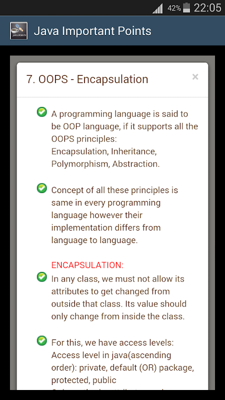The app consists of all the necessary and important theoretical points on below mentioned topics of java programming language:
