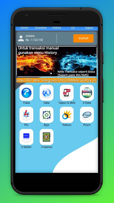 Aplikasi untuk pembelian Pulsa, paket data, paket Nelpon & SMS, voucher Data, token listrik, voucher game.