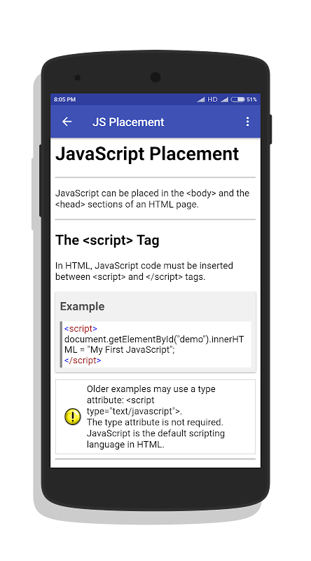 Aplikasi ini mencakup dasar-dasar JavaScript.